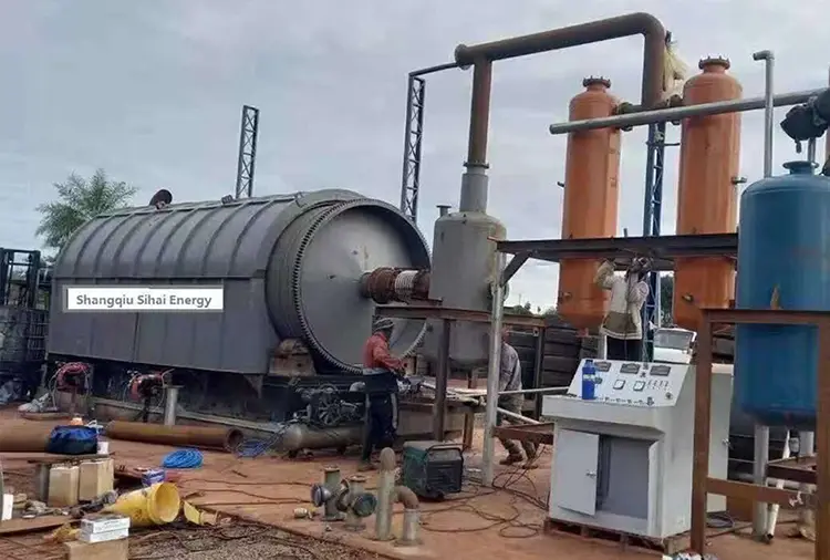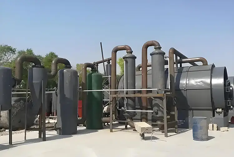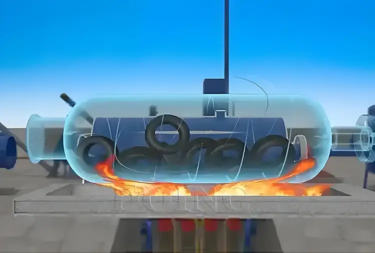 Pyrolyseproces : Verwarming in een zuurstofgebrekomgeving (400-500 ° C) ontleedt rubber in een oliegasmengsel, dat condenseert om stookolie te produceren; Staaldraad en koolstofzwart werden gerecycled door fysieke scheiding. Milieubeschermingsmaatregelen :